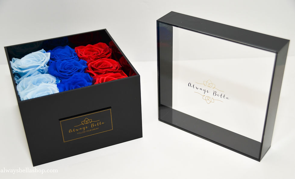 9 Light Blue preserved Roses in the acrylic box "Always Bella" with a DRAWER